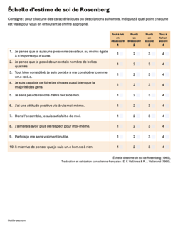 Le document ci-dessous est l’échelle d’estime de soi de Rosenberg. L’estime de soi renvoie à la perception et à l’évaluation globale qu’une personne a d’elle-même. Sa mesure est pertinente dans de nombreux contextes cliniques, car une faible estime de soi est fréquemment associée à divers troubles psychologiques, notamment la dépression, l’anxiété, certaines addictions ou encore […]