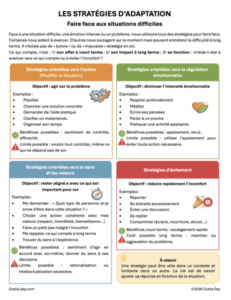 Elle peut être remise au patient en fin de séance comme rappel ou point d’appui pour poursuivre la réflexion entre les rendez-vous. Elle s’adresse aussi bien aux adultes qu’aux adolescents, et peut être intégrée dans un programme de prévention du stress, de gestion des émotions ou de développement des compétences psychosociales. Sa présentation simple et épurée la rend facile à utiliser, y compris dans un contexte de consultation courte ou de sensibilisation (ateliers, écoles, structures médico-sociales).